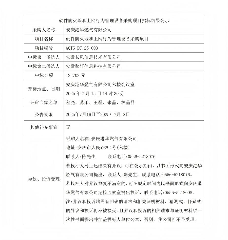 硬件防火墻和上網(wǎng)行為管理設(shè)備采購項(xiàng)目招標(biāo)結(jié)果公示